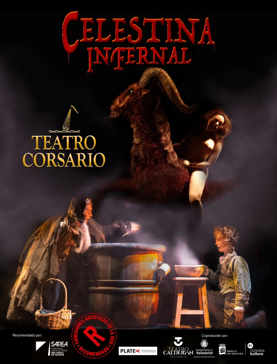 CELESTINA INFERNAL es un espectáculo para adultos, representado por impresionantes muñecos de proporciones humanas, en torno a uno de los personajes más destacados de la cultura universal. Una fantasía en la que no faltan los amores apasionados (con sorprendente erotismo), la violencia, la muerte y el humor más negro. Celestina es una bruja que utiliza la soga de los ahorcados para sus hechizos. Cuando intenta, desesperadamente, volver a ser joven y disfrutar de los placeres perdidos, le llega un difícil encargo: conseguir que Melibea se enamore de Calisto.